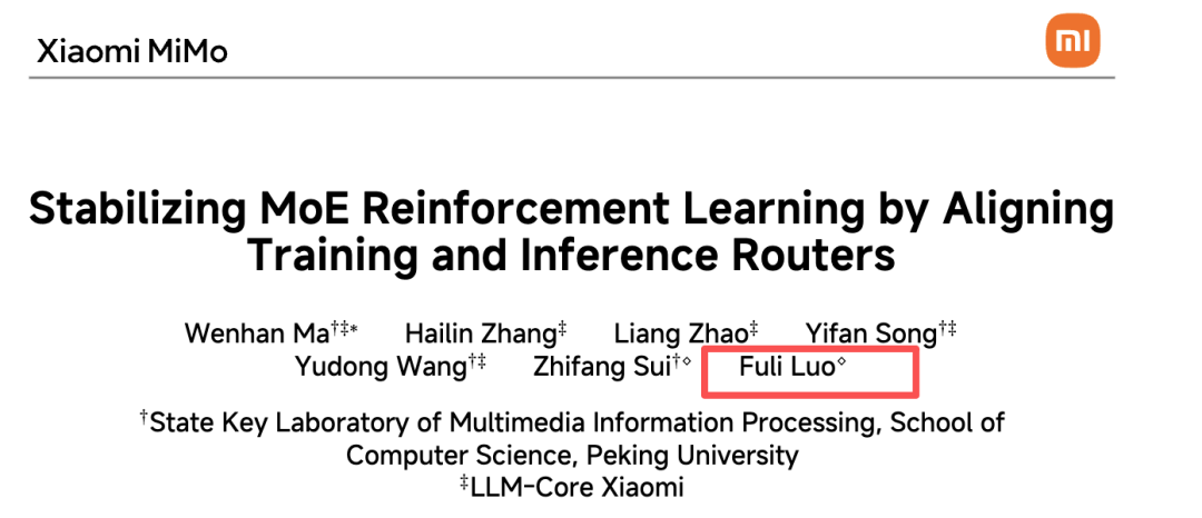 值得一提的是,小米和北京大学联合署名的论文于今年 10 月现身 arXiv,罗福莉就已经出现在这篇论文的通讯作者之列。